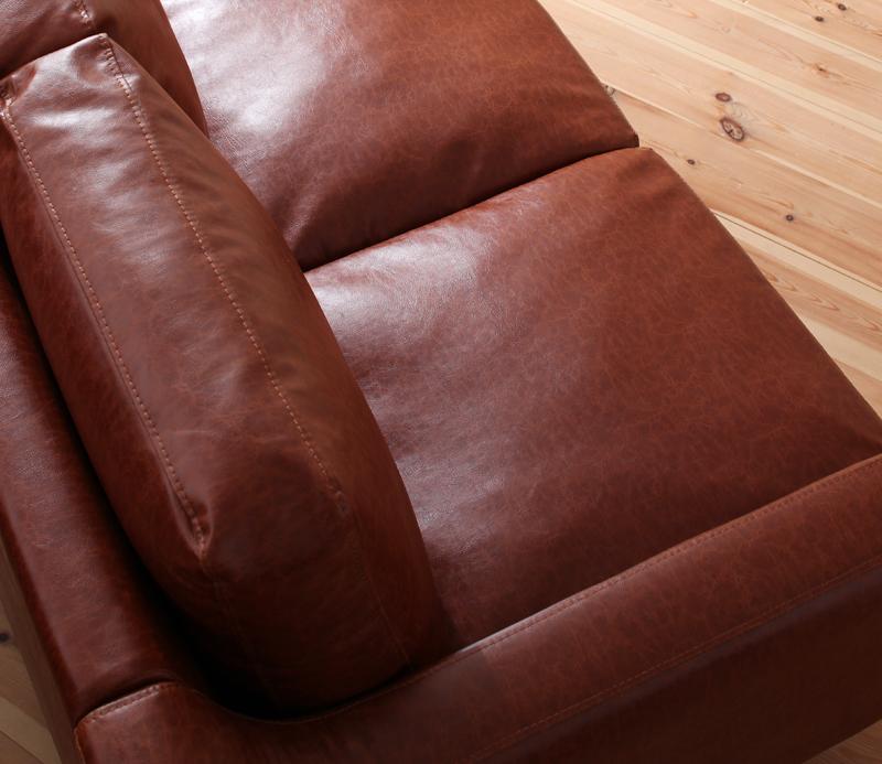 フェイクレザーでヴィンテージ加工が施されたソファ。買ってすぐに、長年使い込まれた風合いを感じられます。堅すぎず、柔らかすぎない座り心地。くつろぎのスペースを作り出します。