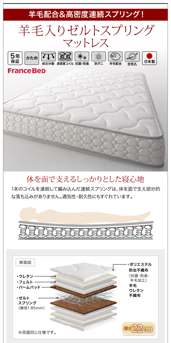 薄型プレミアムポケットコイルマットレス付き / 縦開き / シングル / 深さレギュラー / ホワイト / ホワイト [No.100027545]