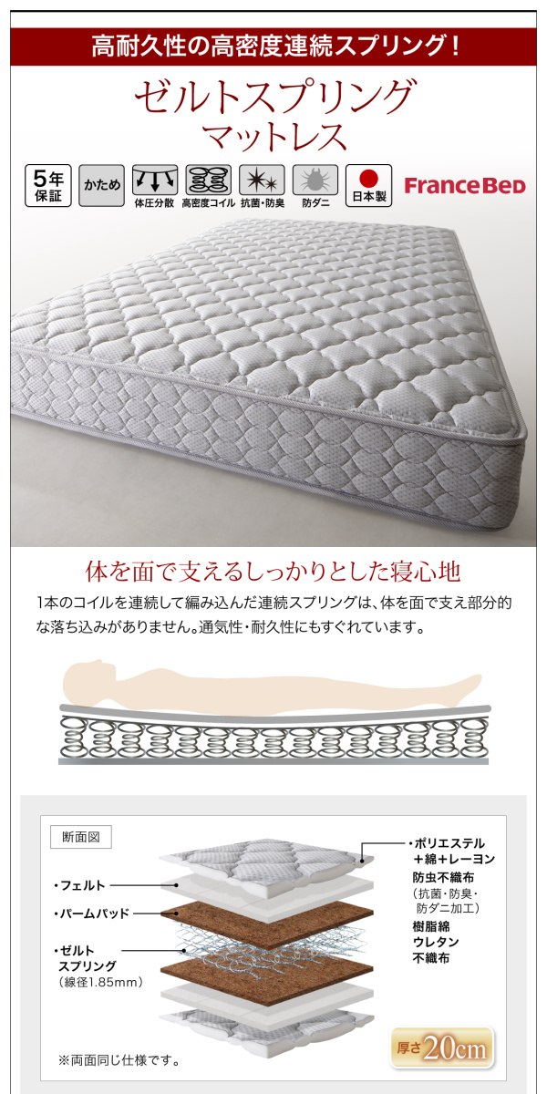 国産頑丈大容量跳ね上げ収納ベッド BERG ベルグ