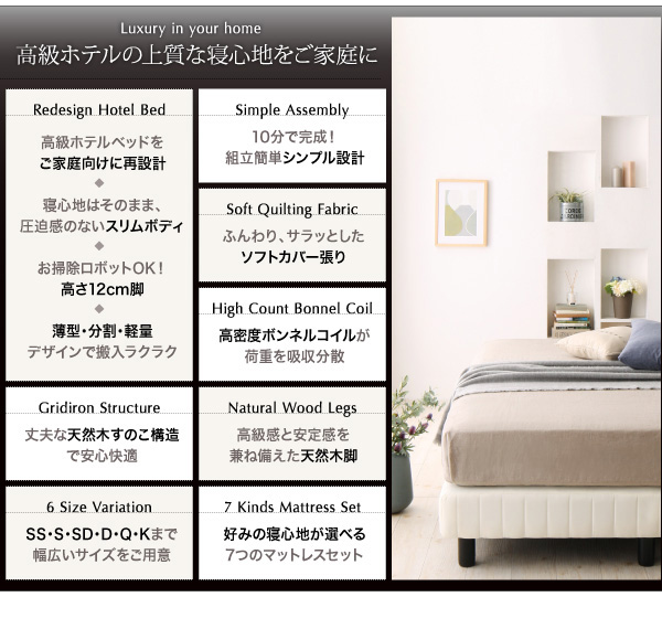 ホテルダブルクッション 脚付きマットレスボトムベッド