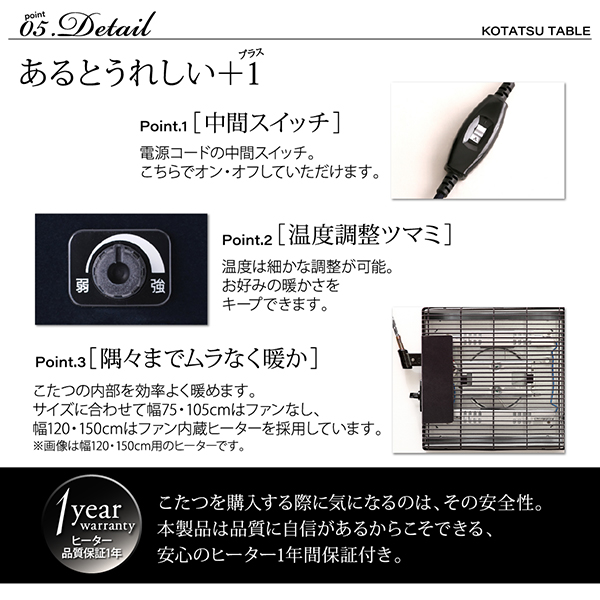こたつ4点セット / 長方形(75×105cm) / ラスターホワイト / サイレントブラック [No.100034955]
