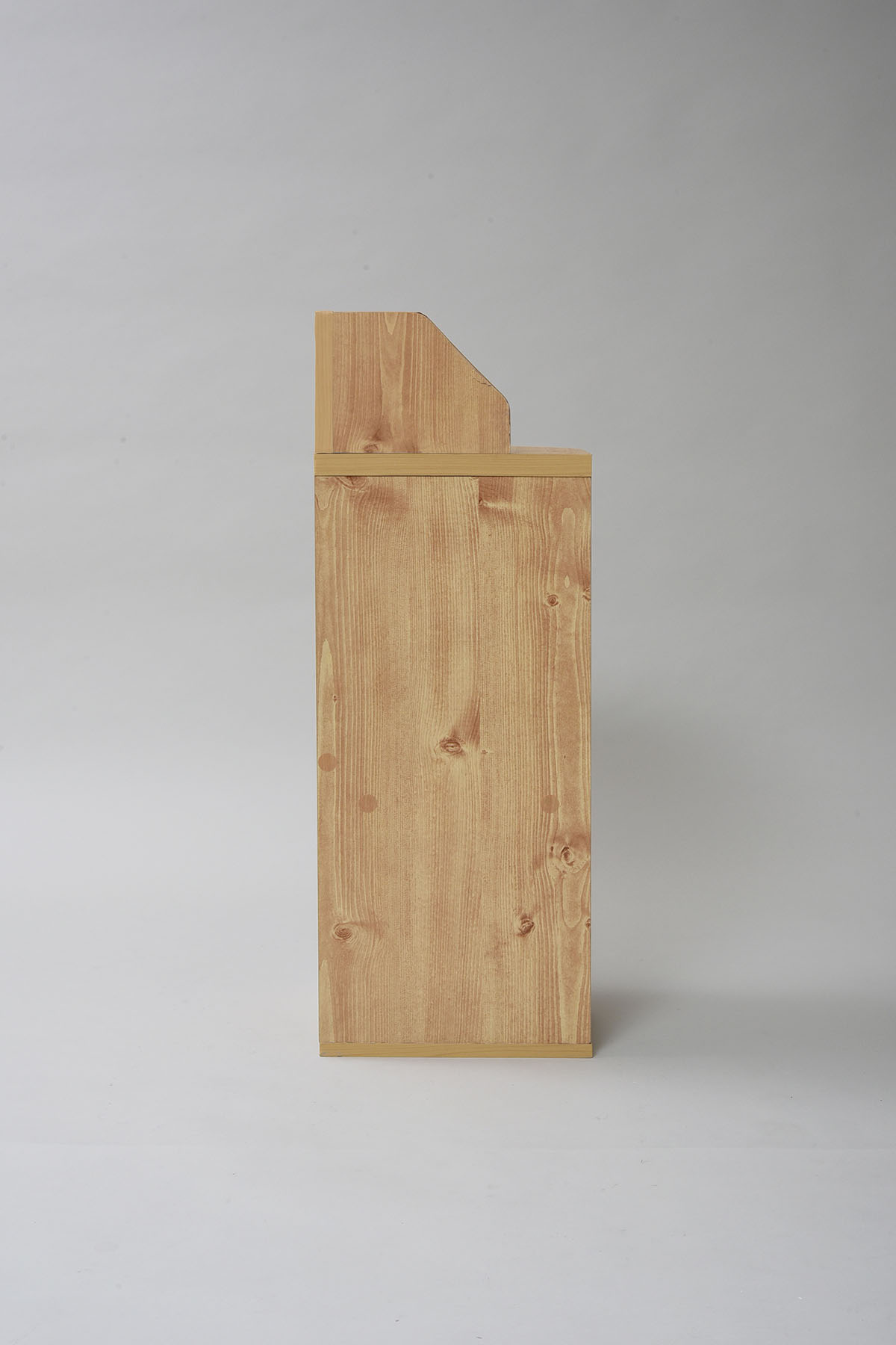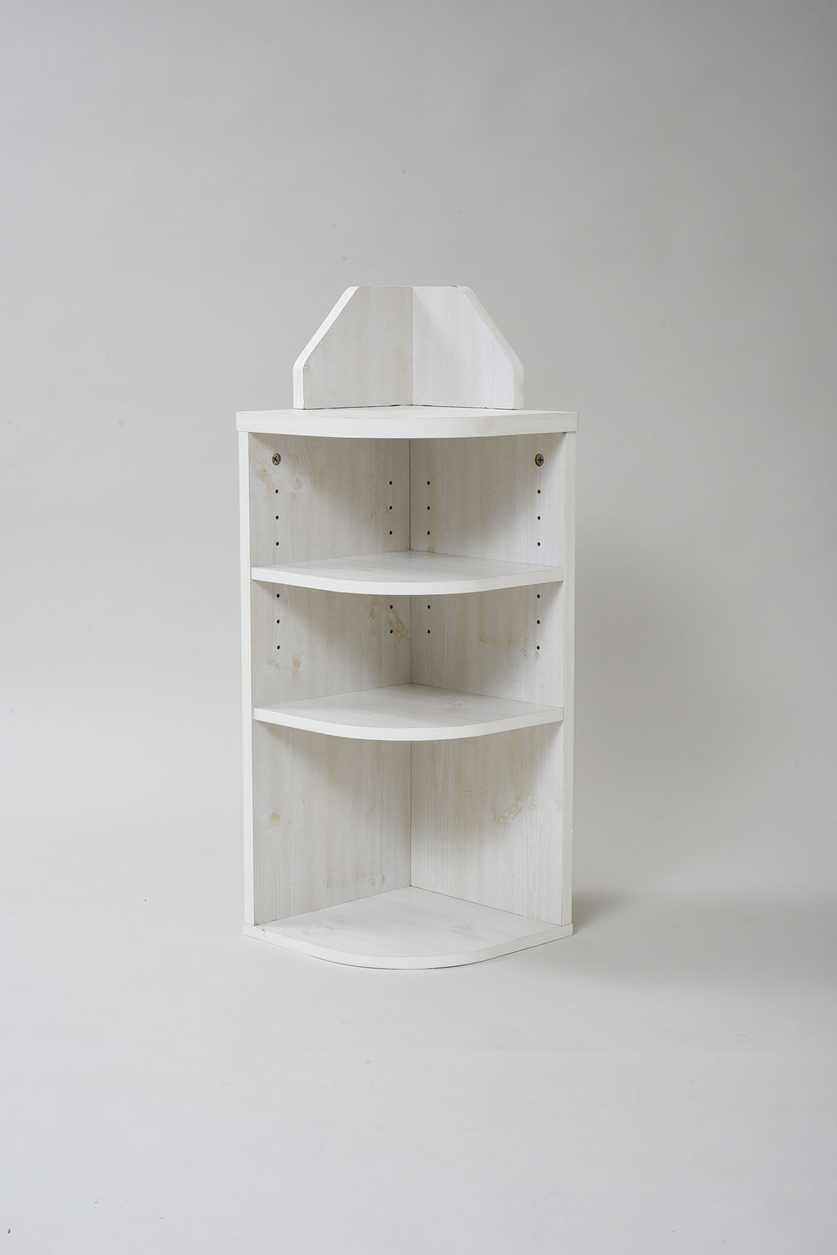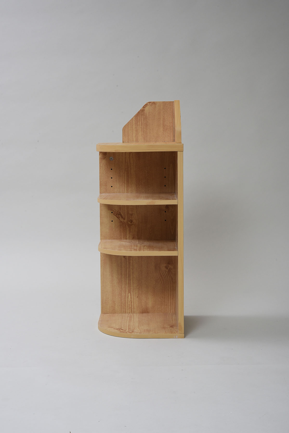 カウンター下を有効活用できる、カウンター下収納シリーズのコーナーラックタイプ。フレンチカントリー調のオシャレなデザイン。天板部はオープンスペース収納として活躍。3段の棚収納を完備しており、高さを調節できる可動棚1枚を備えています。