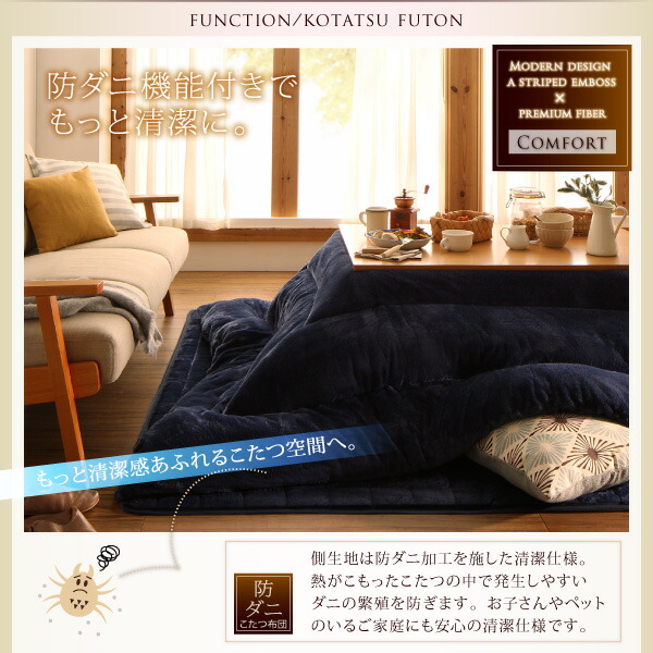 裏プレミアム毛布付きモダンストライプこたつカバー&防ダニこたつ布団シリーズ