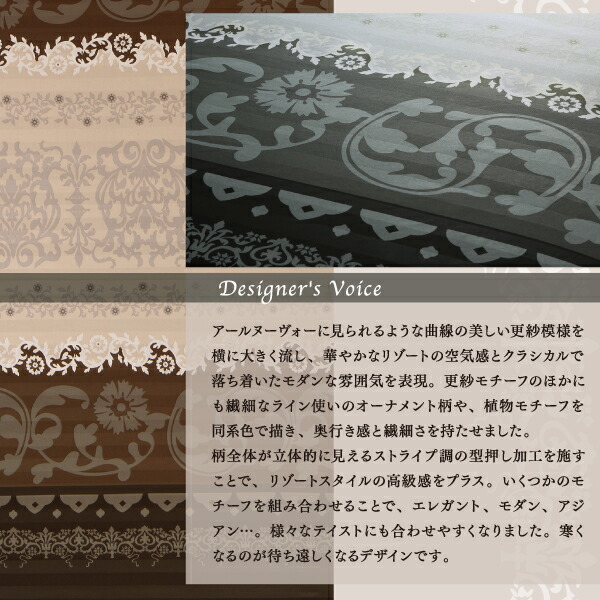 贅沢裏毛布付きリゾートモダンこたつ布団シリーズ brise de mer リゾートの雰囲気を演出するクラシックなデザインのこたつ掛け布団です。敷き布団は厚さの違う2タイプから選ぶことができます。5mm厚タイプは洗濯ができて手軽に使えるタイプです。20mm厚タイプはしっかりとしたクッション性で、底冷えや床つき感をしっかり防ぐタイプです。
