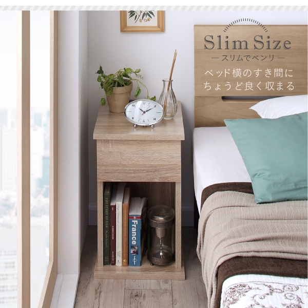 コンセント・収納付きナイトテーブル eskeep エスキープ ベッドサイドやソファサイドなどに設置して便利に使えるナイトテーブルです。テーブル部分にはコンセントを備えています。下部には小物や本などを収納できるスペースを備えています。また、引き出しタイプとオープンタイプをご用意しておりお好みでお選びいただけます。