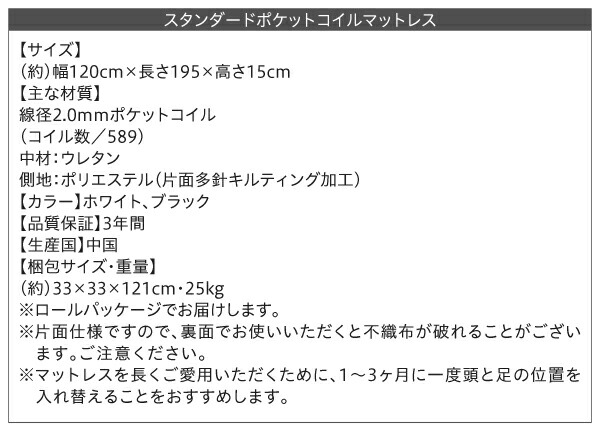 スタンダードポケットコイルマットレス付き / ブラック / ホワイト [No.100059594]