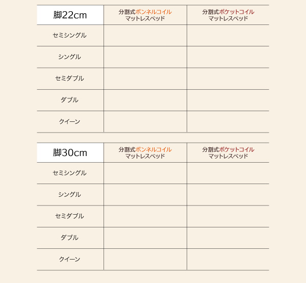 ボンネルコイルマットレスタイプ(敷きパッドなし) / セミダブル / 脚22cm / - [No.100076067]