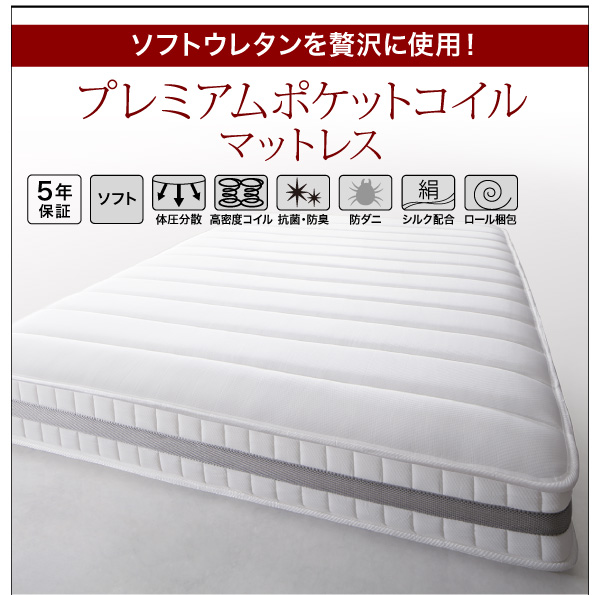プレミアムポケットコイルマットレス付き / シングル / ナチュラル / ホワイト [No.100000145]