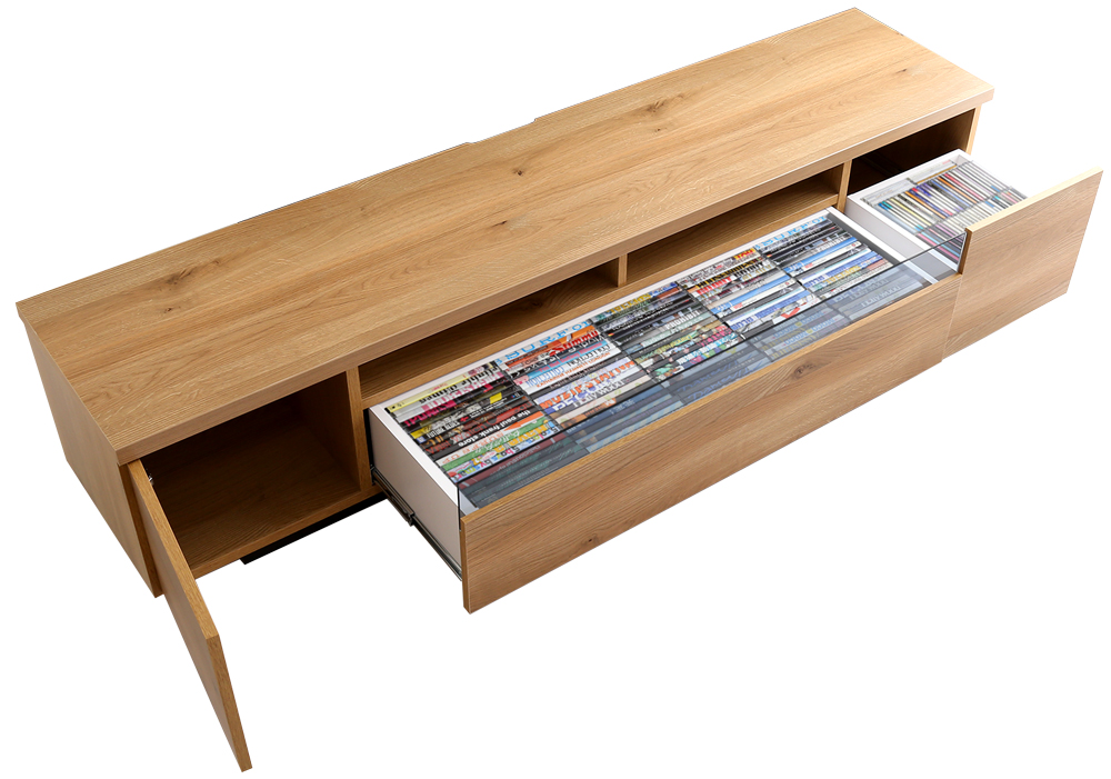 シンプルスタイリッシュ テレビ台 luminos ルミノス 幅120cm 日本製、完成品で安心、シンプルで美しくスタイリッシュなテレビ台、幅120cmタイプです。AV機器スペース、大容量引き出し収納、開き戸収納を備えています。ダークブラウン、ナチュラル、ホワイト、ウォールナット、シャビーオークの豊富な5色から選べます。
