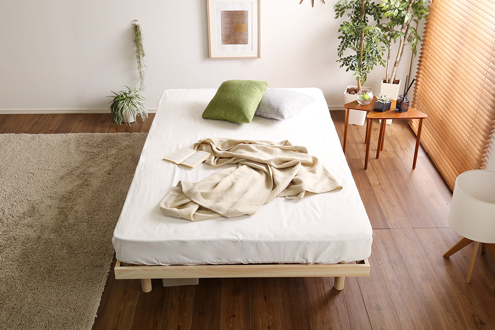総檜脚付きすのこベッド セミダブル Pierna ピエルナ 国産の檜を使用した、やすらぐ総檜脚付きすのこベッドのセミダブルです。3段階で高さ調節が可能です。通気性のよいすのこ仕様で、布団を湿気から守ります。静止耐荷重約200kgの頑丈な設計で安心です。ノンホルムアルデヒド仕様。