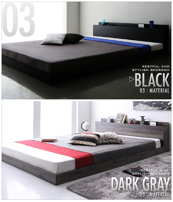 長年愛されているベストセラーのフロアベッドです。高さを抑えたフロアベッドは圧迫感が少なく開放的です。宮棚、コンセント付きのヘッドボードで使い勝手の良い仕上がりです。