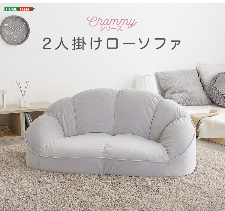 ローソファ2人掛け Chammy チャミー SH-07-OKCBS-2 幅115×奥行71×高さ48cm 完成品 クロワッサンのようなかわいいフォルム 背もたれにボリュームがあるのでしっかりと体を預けて座ることができます。