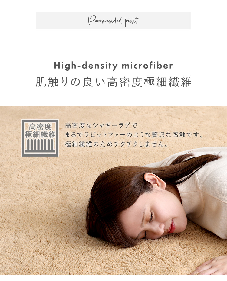 ふわふわの極細繊維で心地よい手触りのシャギーラグ、ふわふわシャギーラグ 200×250cm Lサイズ SHRG-Lは、肌触りの良い心地よいラグです。夏場もベタつかず、冬場はホットカーペットや床暖房と併用可能なので、オールシーズン快適にお使いいただけます。高密度なシャギーラグであり、頬ずりしたくなるような柔らかな肌触りを実現しています。滑り止め加工が施されているので、床面をしっかりキャッチして安定しています。手洗い可能なので清潔に保つことができ、長くご愛用いただけます。8色のカラーバリエーションからお好みの色を選ぶことができます。ブラウンやアイボリーなど、豊富なカラーラインナップで、お部屋のインテリアにぴったりの色を見つけることができます。ふわふわシャギーラグ 200×250cm Lサイズ SHRG-Lは、見た目の美しさだけでなく、機能性にも優れたシャギーラグです。ふんわりとした感触と優れた使い勝手で、お部屋に温かみとリラックス感を与えてくれます。