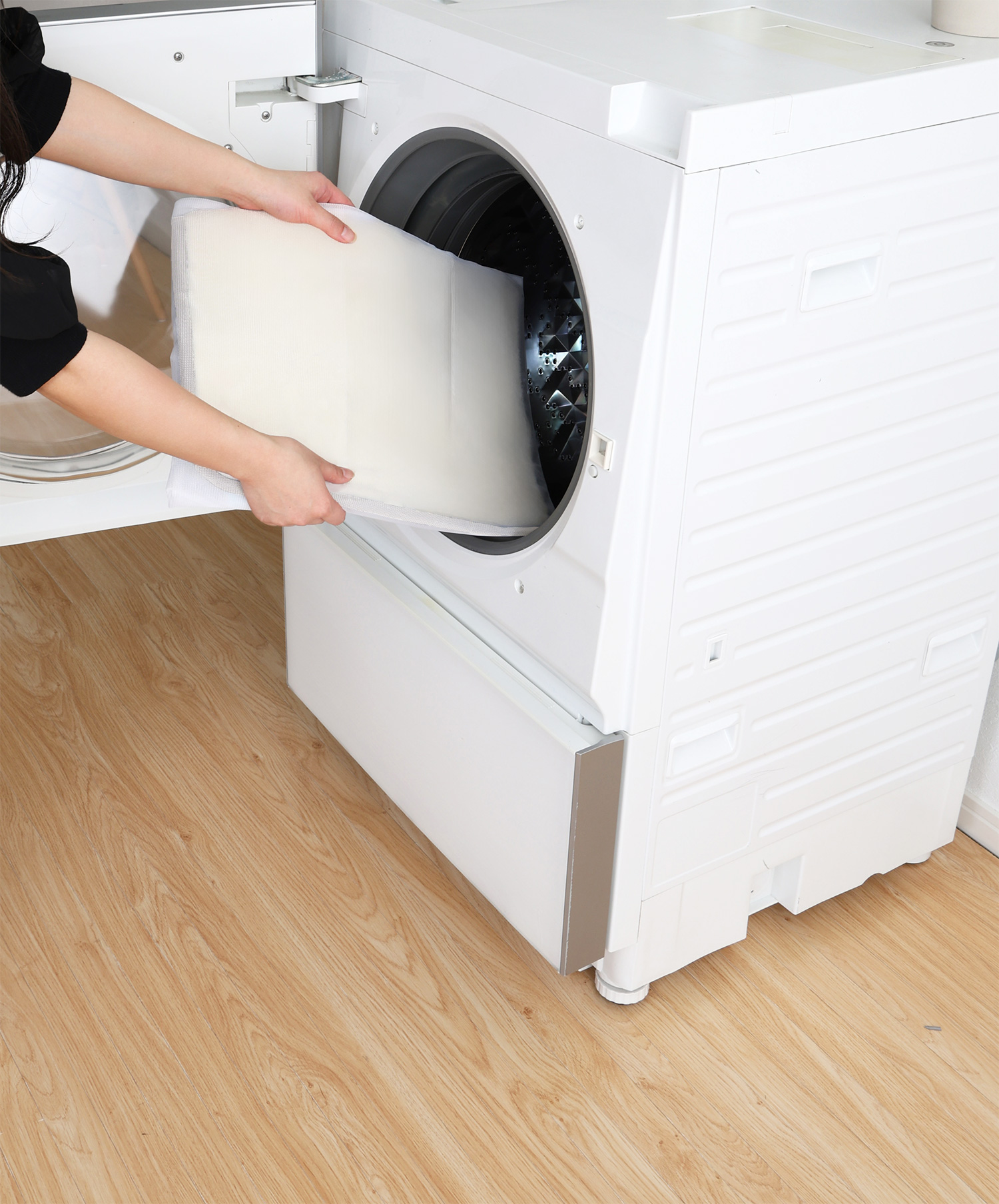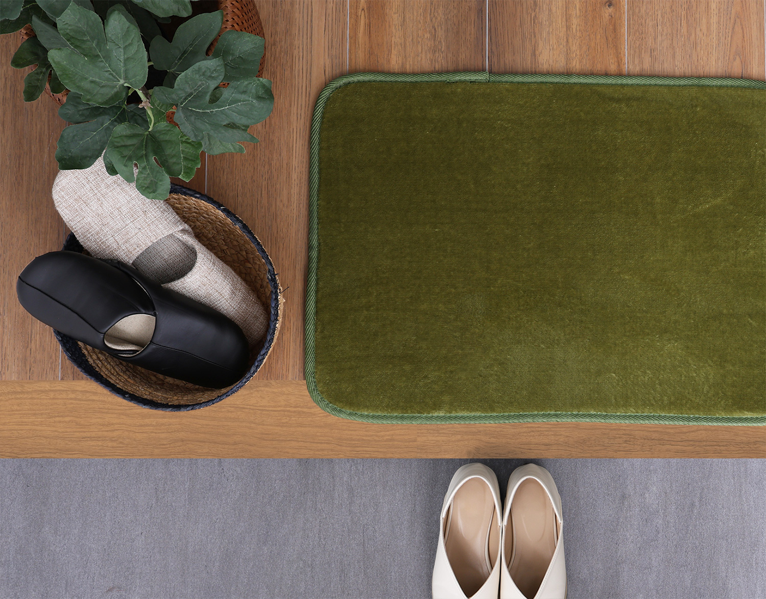 超高密度マイクロファイバーを使用した玄関マット、45×65cmサイズです。はっ水、速乾性を持ち、洗濯機での丸洗いが可能です。毛足が短く、掃除機かけもスムーズに行えます。また、抗菌・防ダニ加工が施されており衛生的です。裏面はクッション性のある不織布を使用し、すべり止め加工も施されています。接着剤を一切使用しない独自製法、ノンホルムアルデヒドでお子様も安心です。アメジスト、グリーン、ダークグレー、ブラウン、ベージュ 、ペールピンク、カーキ、グレーの8色から選べます。