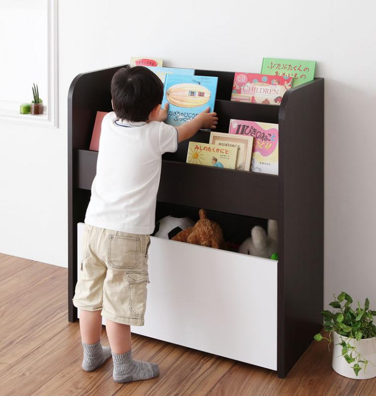 リビングキッズファニチャーシリーズ SMILE スマイル おもちゃ箱付き絵本ラック