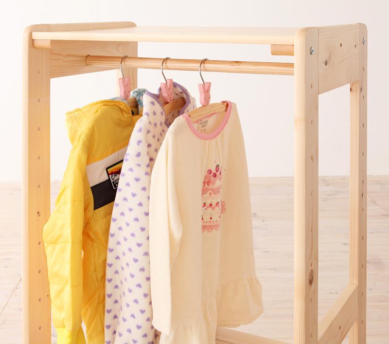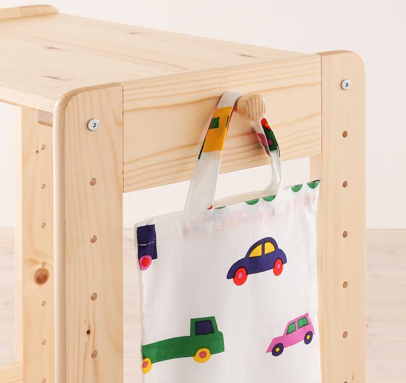 天然木の優しい風合い、木目が楽しめる。天然木シンプルデザインキッズ家具シリーズです。「チェスト」は、引き出し収納5杯、両側に鞄がかけられるフック付き。充実の収納力を備えています。引き出し収納は、ワイドサイズでたっぷりの収納力、お子様の衣類だけでなく、家族みんなの衣類を収納できるほどの大容量です。また、スライドレールを装備しているので、お子様でも簡単に出し入れができる仕様です。