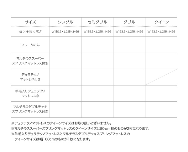 ※サイズやマットレスタイプにより、マットレスが分割仕様(2枚以上の組み合わせ)の場合がございます。詳細はマットレスの仕様をご確認ください。