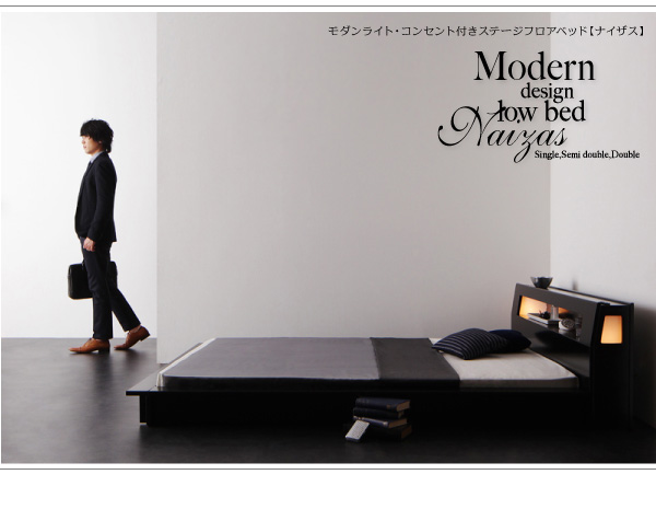 モダンライト・コンセント付きステージフロアベッド Naizas ナイザス