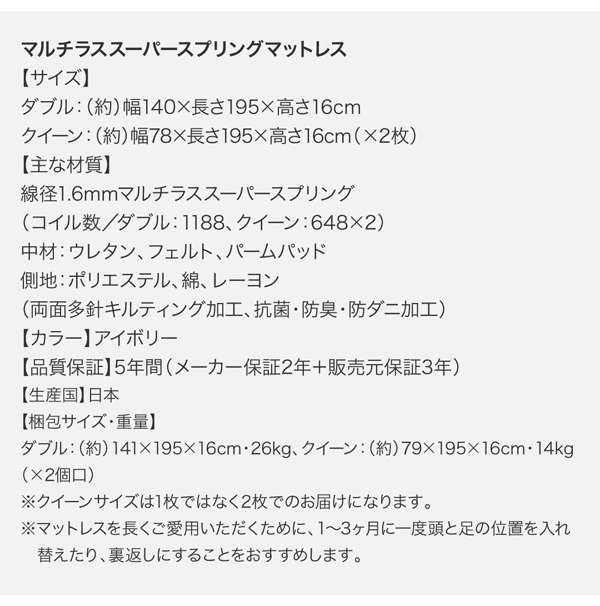 組立設置付き マルチラススーパースプリングマットレス付き / ダブル / ホワイト / アイボリー [No.500006473]