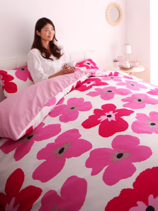 ベッド用カバーリング3点セット / ダブル / フラワー柄×スモークピンク [No.100023868]