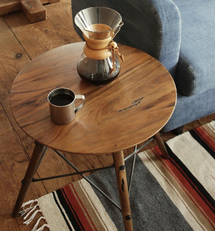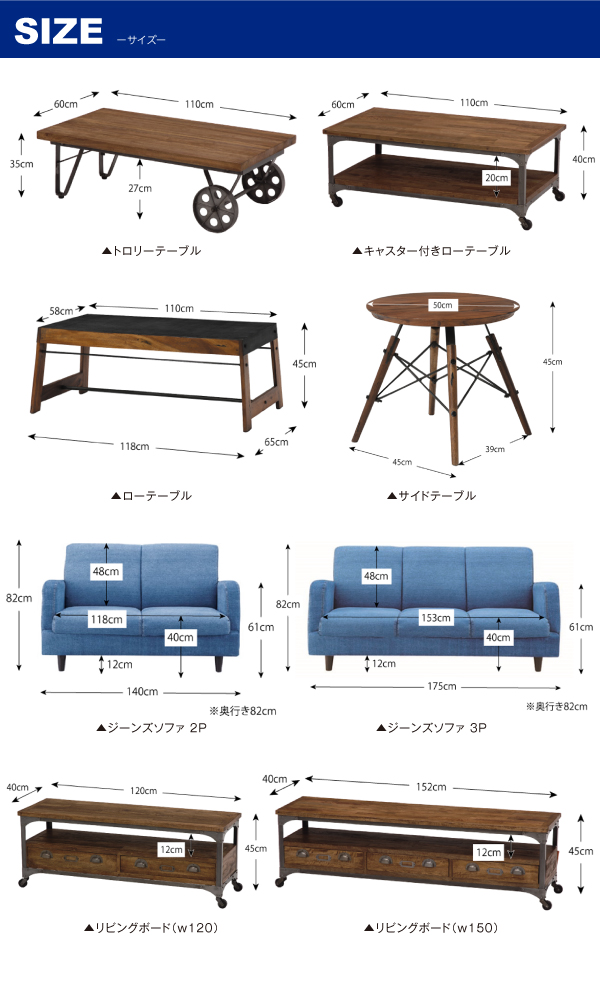 無垢材とスチール素材を組み合わせた、無骨なカッコ良さを持ったリビング家具シリーズ。フロアテーブル(ローテーブル)、サイドテーブル、ソファ、リビングボード(テレビ台)、ポールスタンド、デスク、スツールなど、豊富なシリーズ家具。ローテーブルは3タイプ、ソファは2サイズ、リビングボードは2サイズから選べます。自分好みのセットで、お気に入りの空間を作り上げてください。