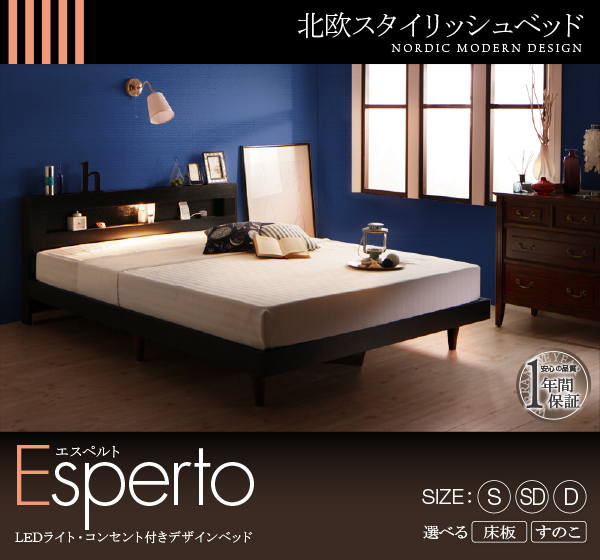 LEDライト・コンセント付きデザインベッド Esperto エスペルト