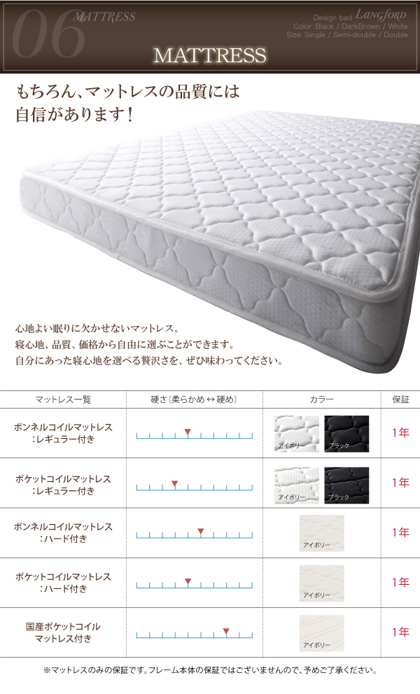 床板仕様 / ボンネルコイルマットレス:ハード付き / ダブル / ブラック / アイボリー [No.79879]