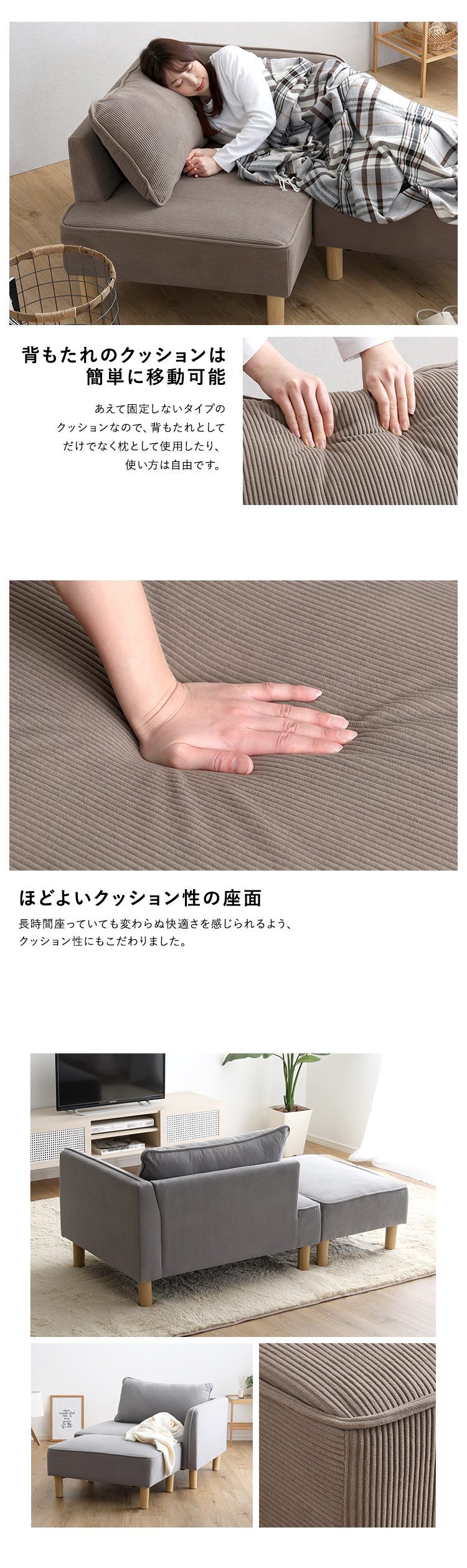 コーデュロイ生地 コンパクトカウチソファ Glen グレン