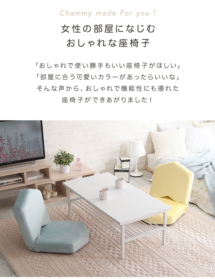 幾何学デザインと明るいパステルカラーがお部屋に彩りを加える、女性におすすめの三角座椅子です。14段階のリクライニング機能を搭載。ギアには信頼性の高い日本メーカーKOYO製を採用。クッション材には、へたりづらく耐久性が高い、高密度チップウレタンを使用しています。表面はなめらかな肌触りが楽しめる起毛生地を使用。女性が使いやすいサイズ感。嬉しい完成品でのお届けです。グレー、ホワイト、イエロー、ブルー、ピンクの5色から選べます。