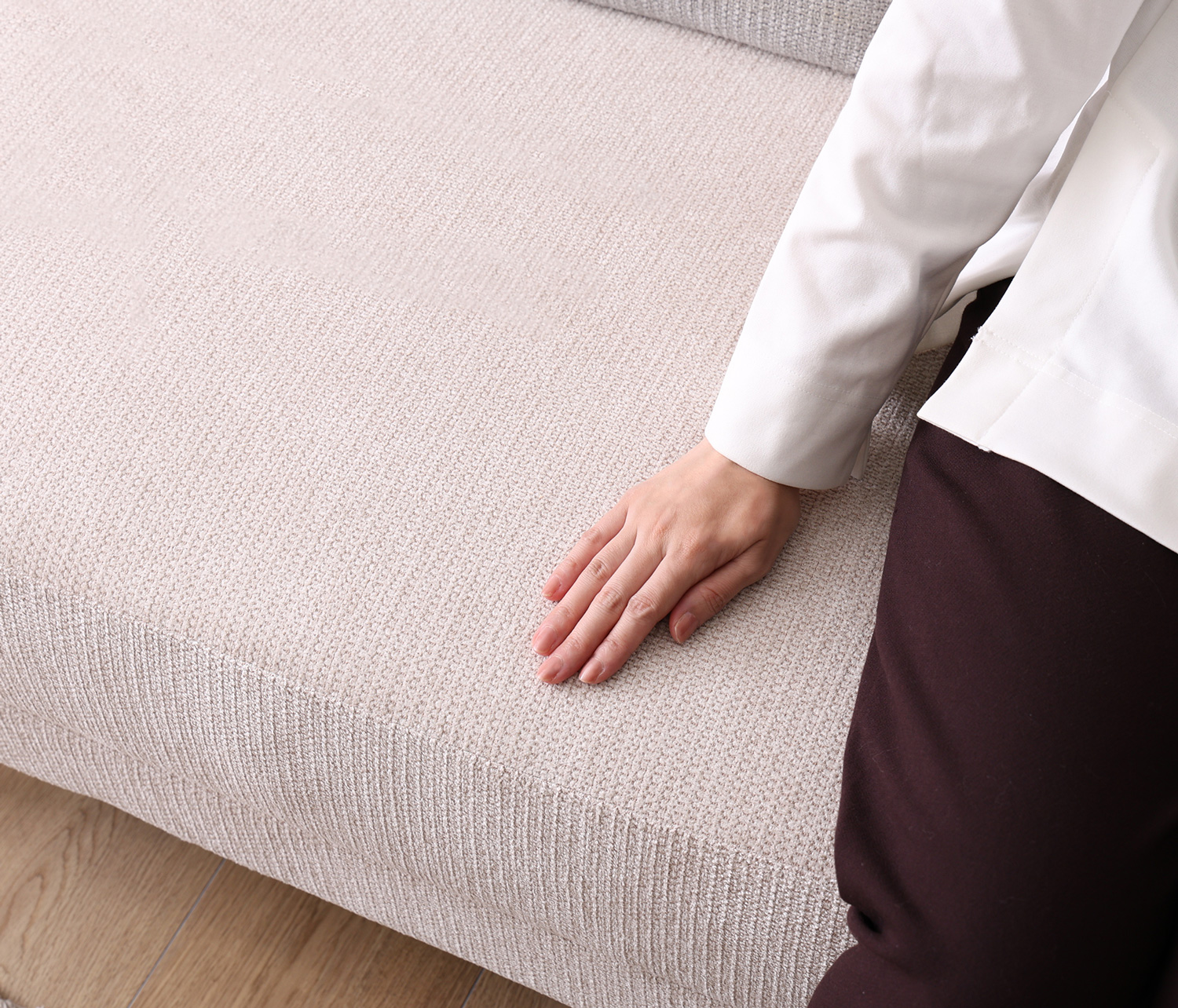 360度どこからでも座れる、アイランドソファの2.5人掛けサイズです。座面と背もたれがセパレートされており、あらゆる方向から座ることができます。脚を外してロースタイルでも使えます。座面、背クッションともに、しっかりとしたクッション性。張地には撥水機能付き生地を採用しており、お手入れが簡単です。脚はガンメタリックカラーのスチール脚を採用。ベージュ、グレー、レッドの3色から背クッションカラーが選べます。脚のみお客様取り付けの完成品です。
