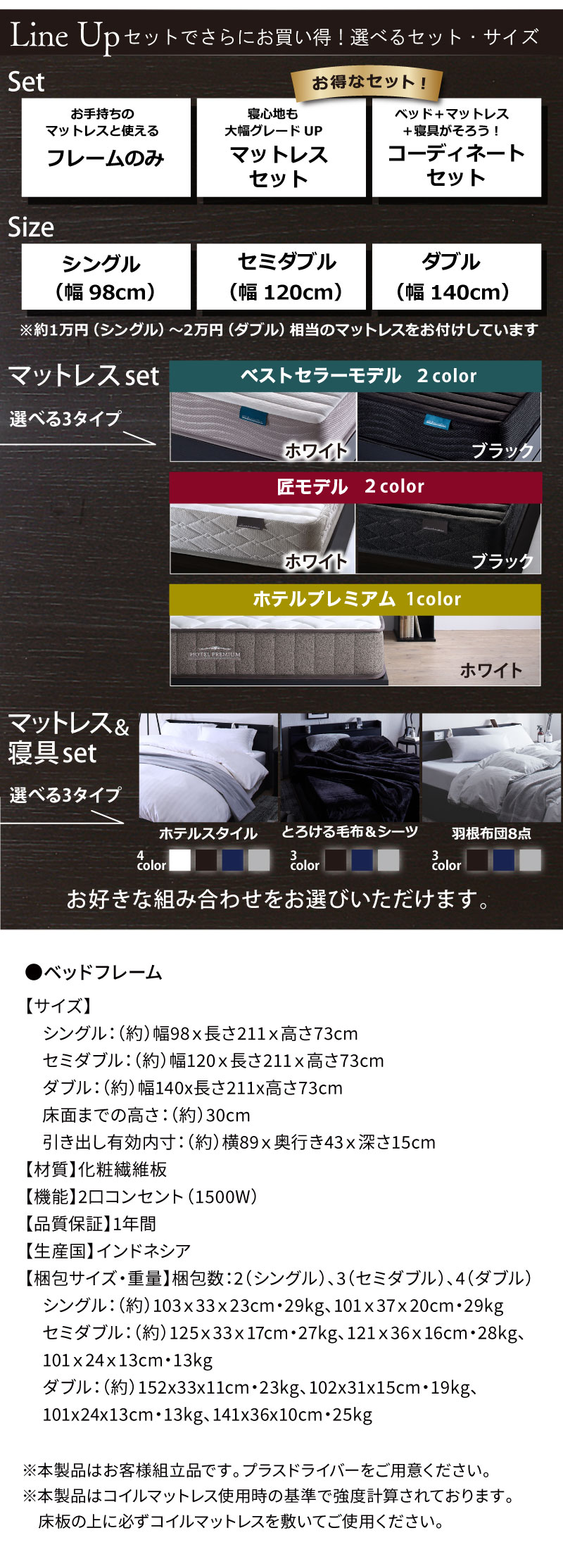他のバリエーション(商品タイプ)を確認される場合や、商品全体の情報を確認される場合は、「棚 コンセント付き 引き出し収納ベッド Ever X エヴァー エックス ウッドブラック」にお戻りください。