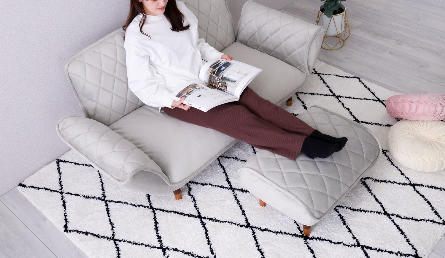 ダイヤモンドキルトカウチソファ 2人掛け オットマンセット Chammy チャミー