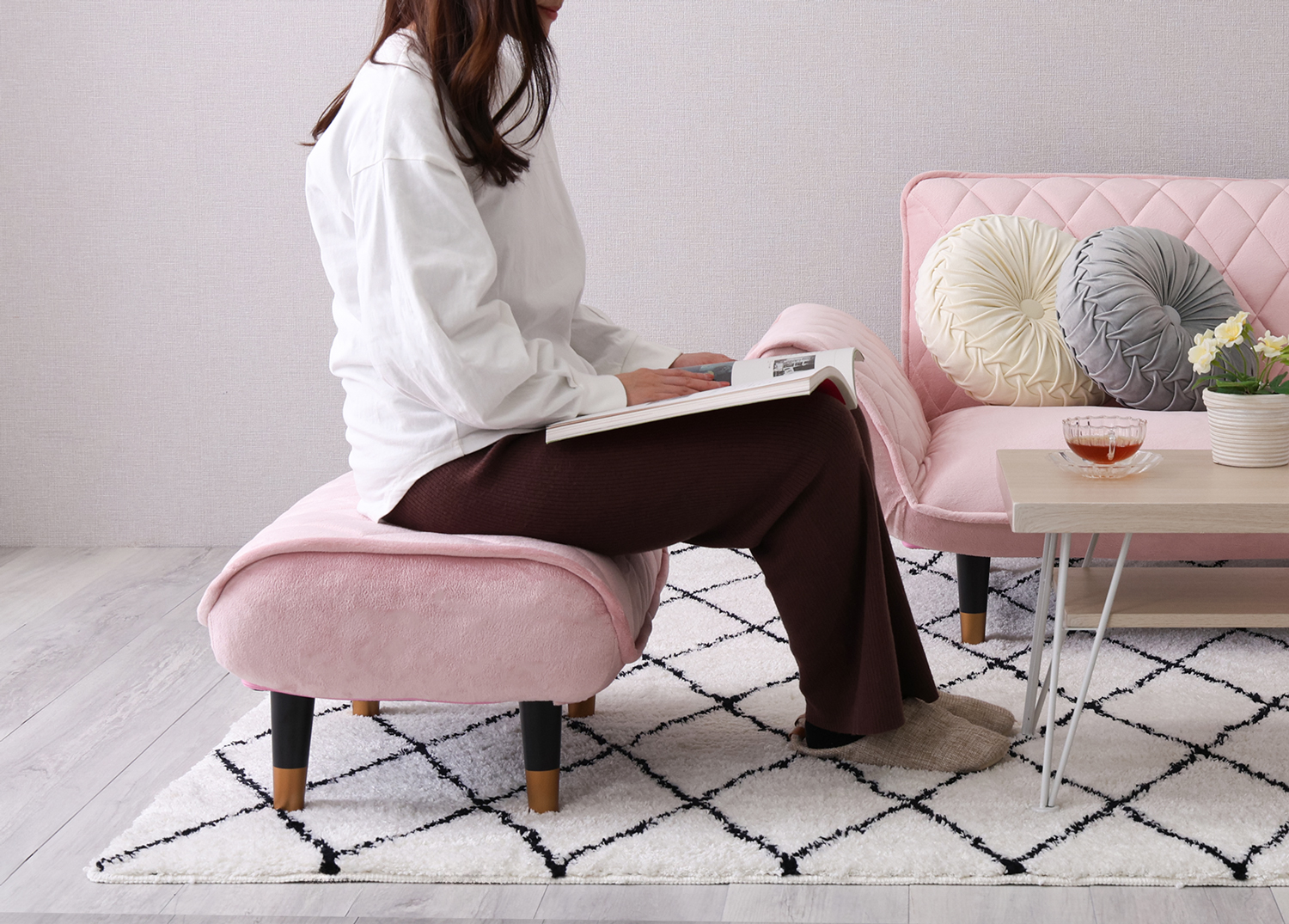 ベロアカウチソファ 2人掛け+オットマンセット Chammy チャミー