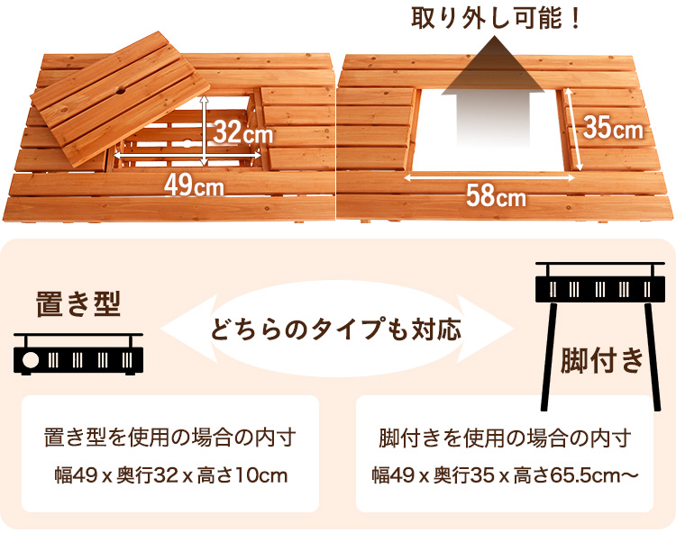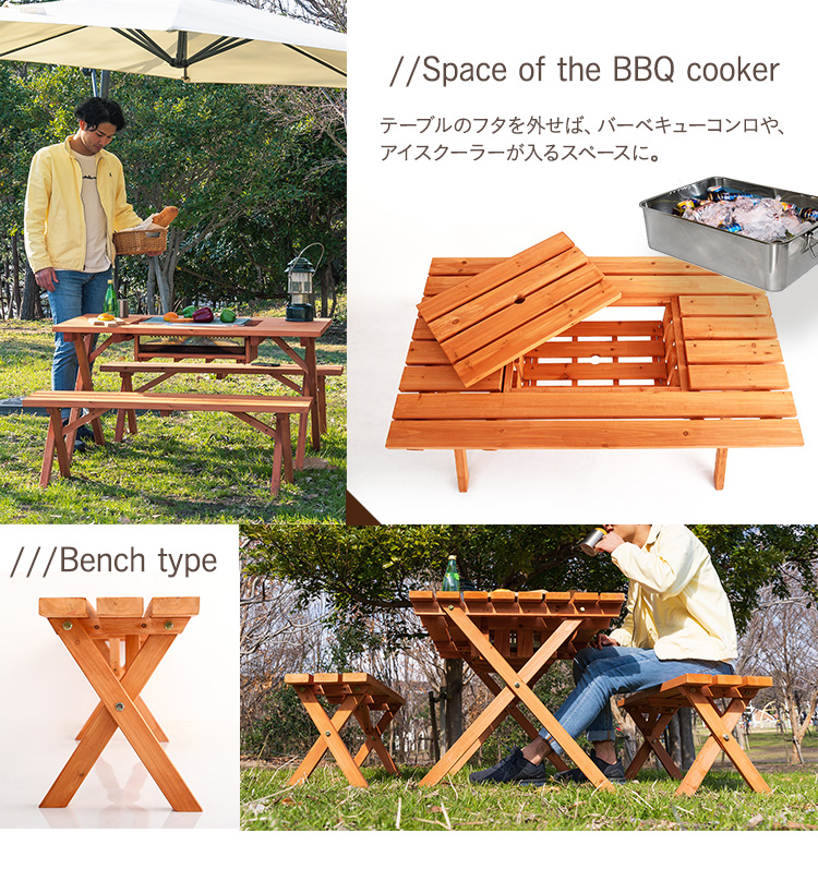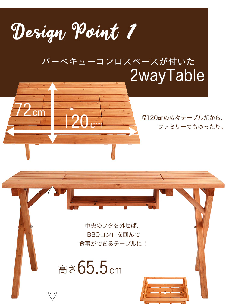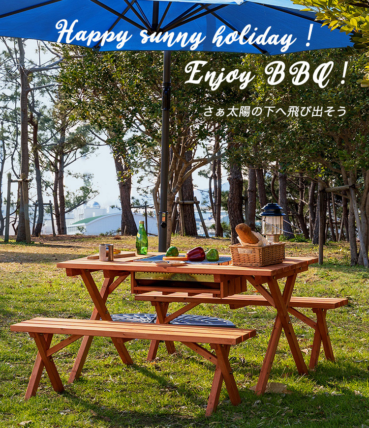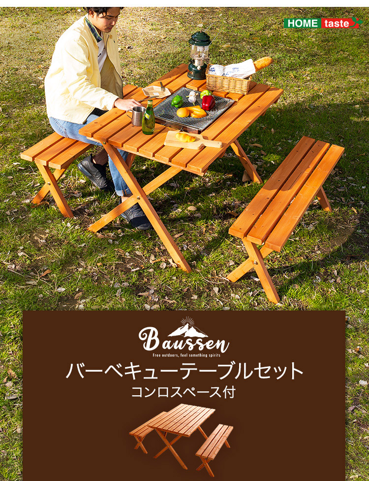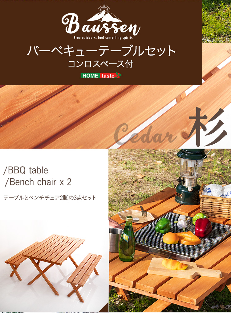 コンロスペース付 BBQテーブル3点セット Baussen バウゼン