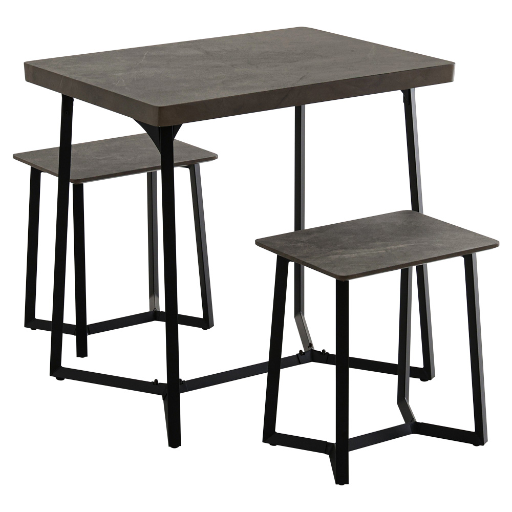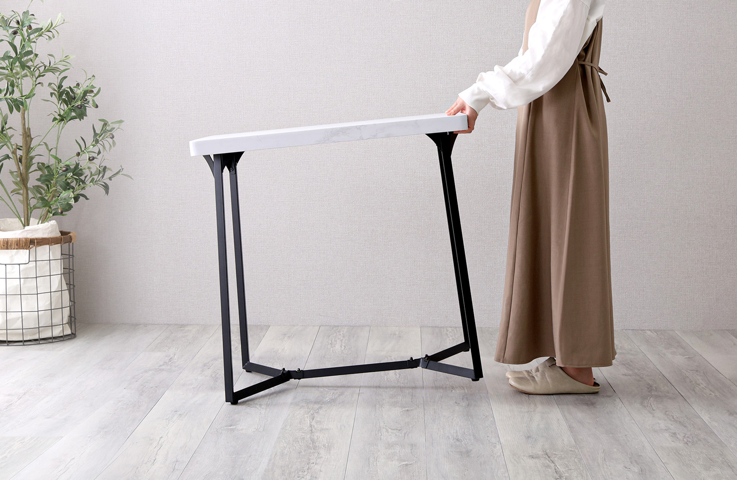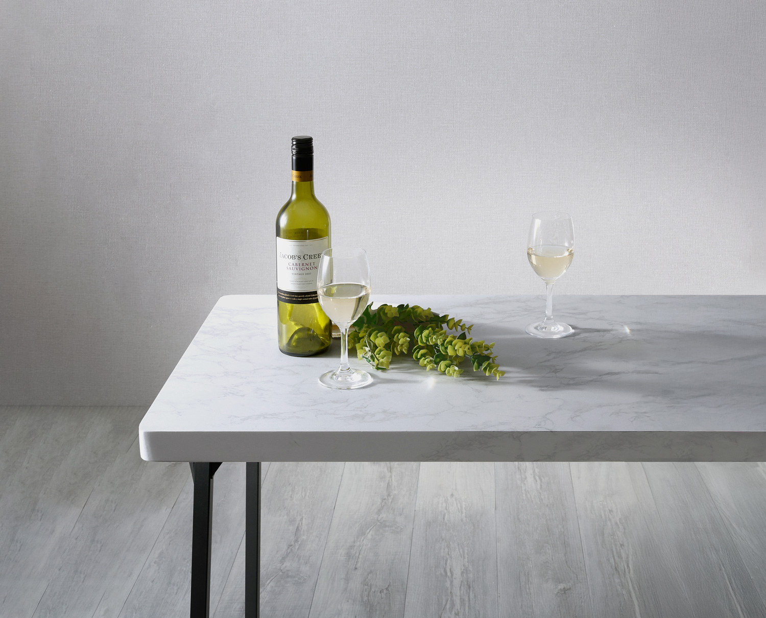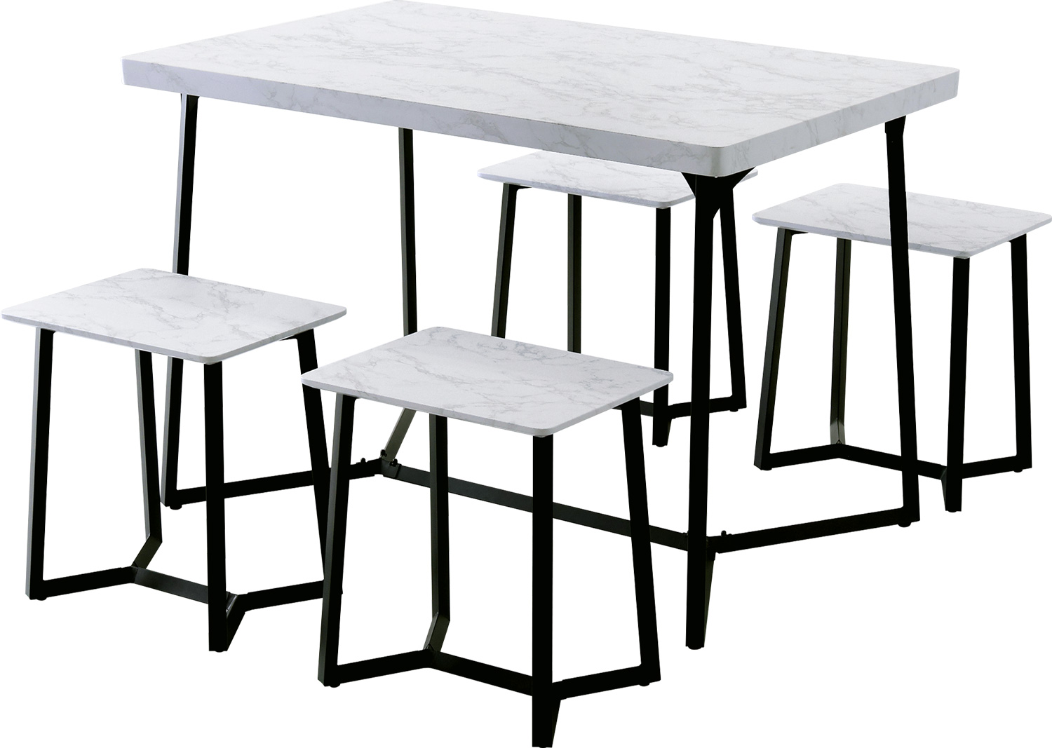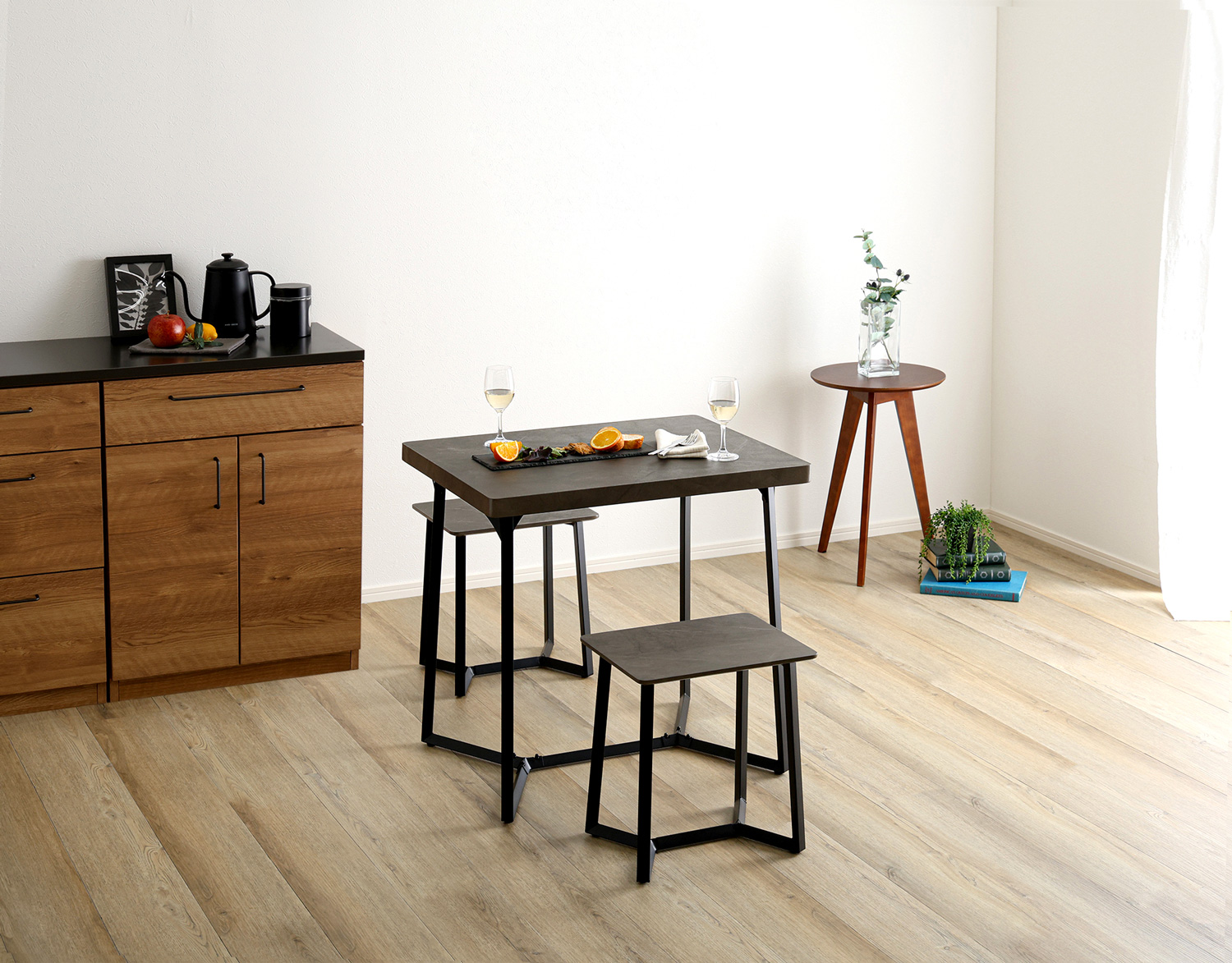 美しい大理石の模様を施したダイニングテーブルと、スツールタイプのチェア2脚の大理石調ダイニング3点セットです。直線的なデザイン、シャープなフォルムで洗練された印象のダイニング。リアルな大理石柄の天板のダイニングテーブルは、1人~2人で使うのに丁度良いコンパクトサイズ。チェアはスツールタイプを採用しており、前後左右から腰掛けやすく、軽量でテーブルの下にすっきり収まる設計。耐荷重約100kgで安定感があります。ホワイト、グレーの2色から選べます。