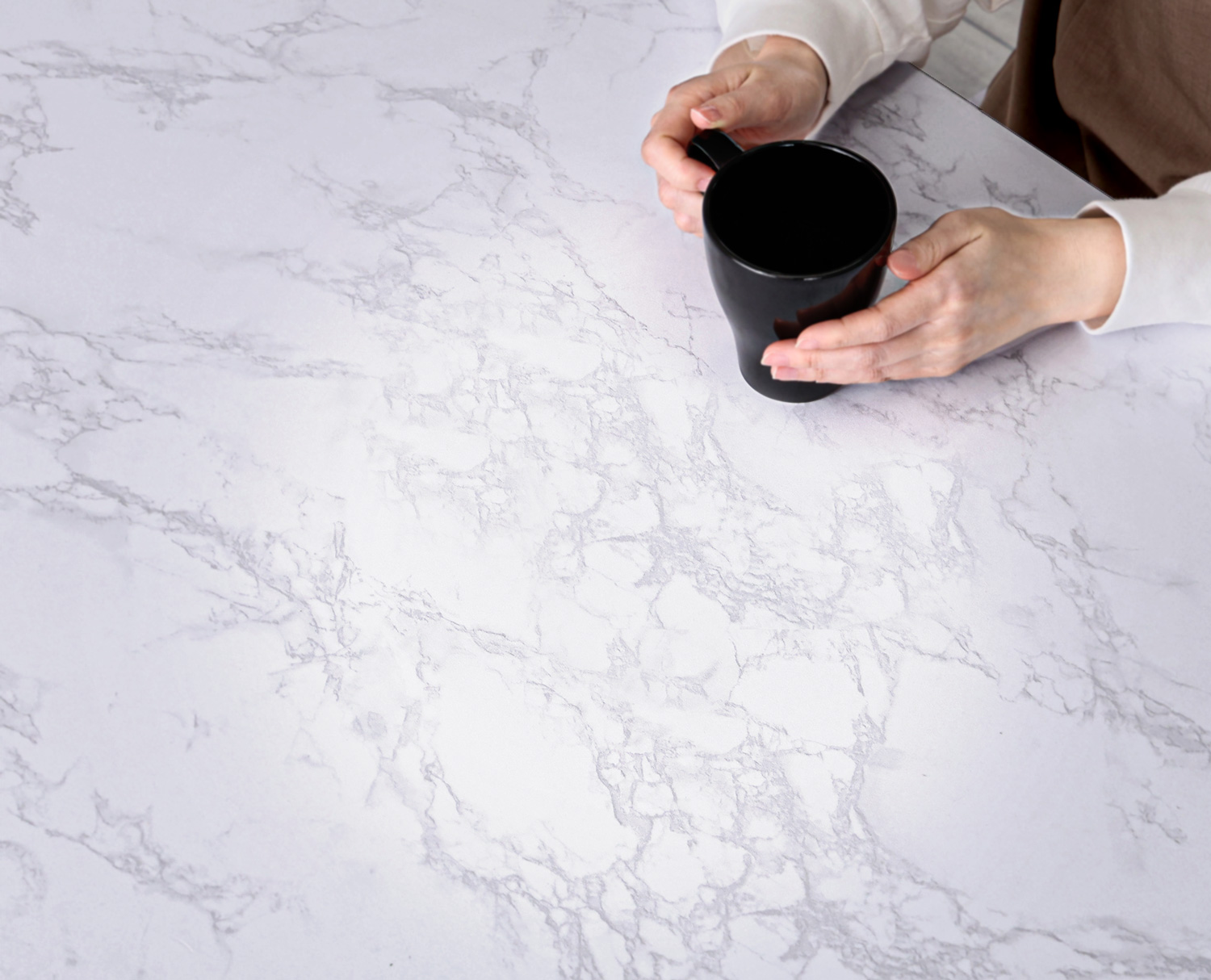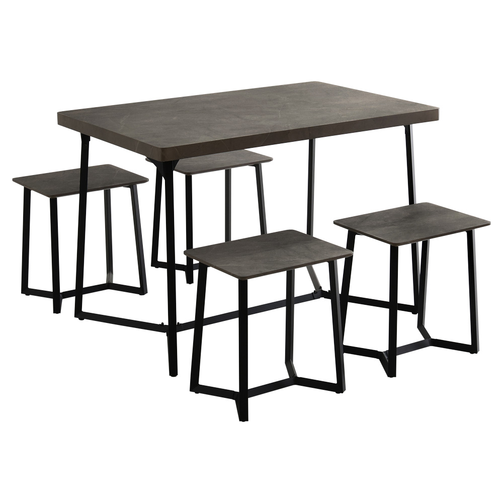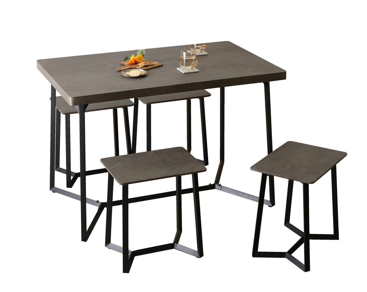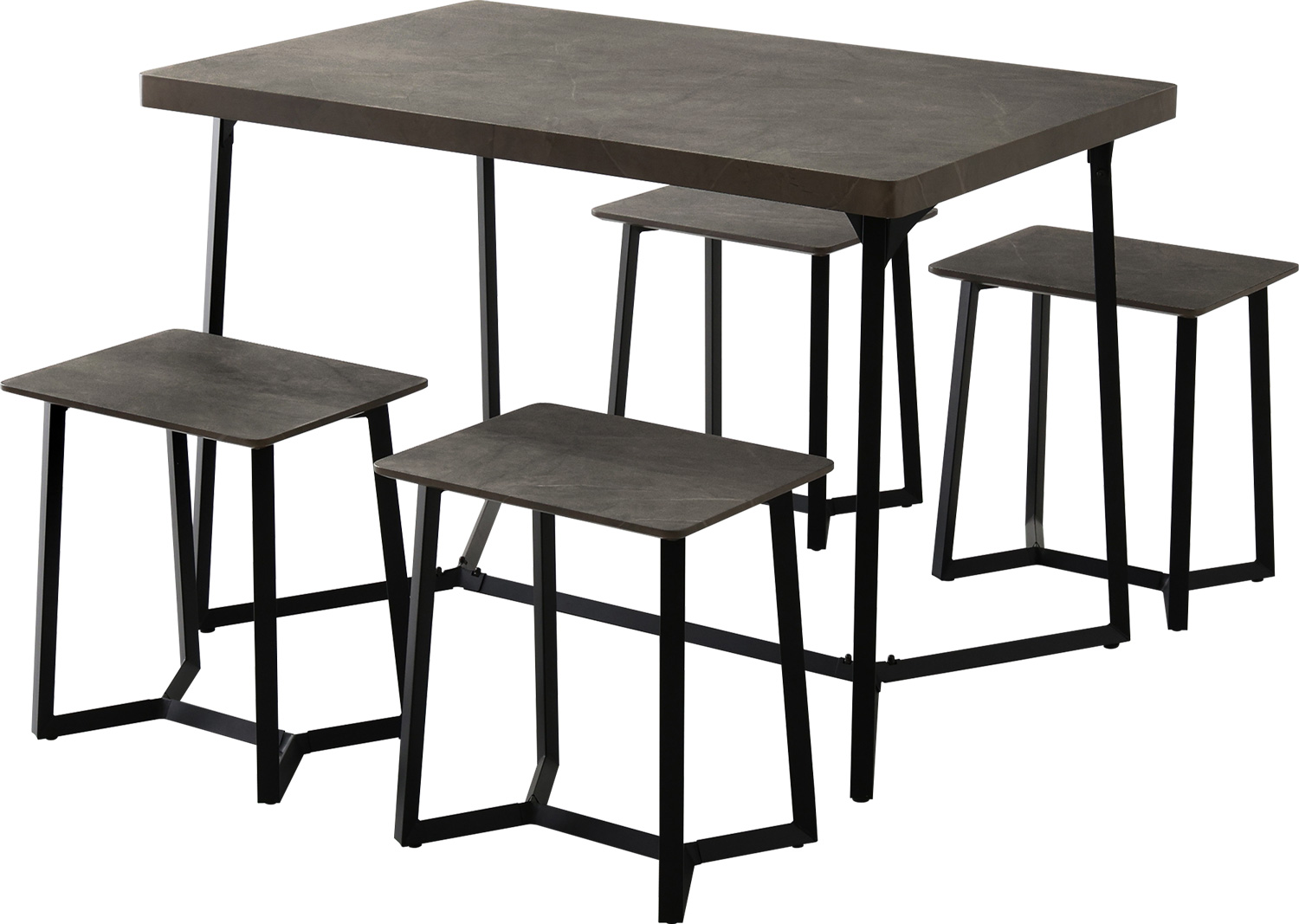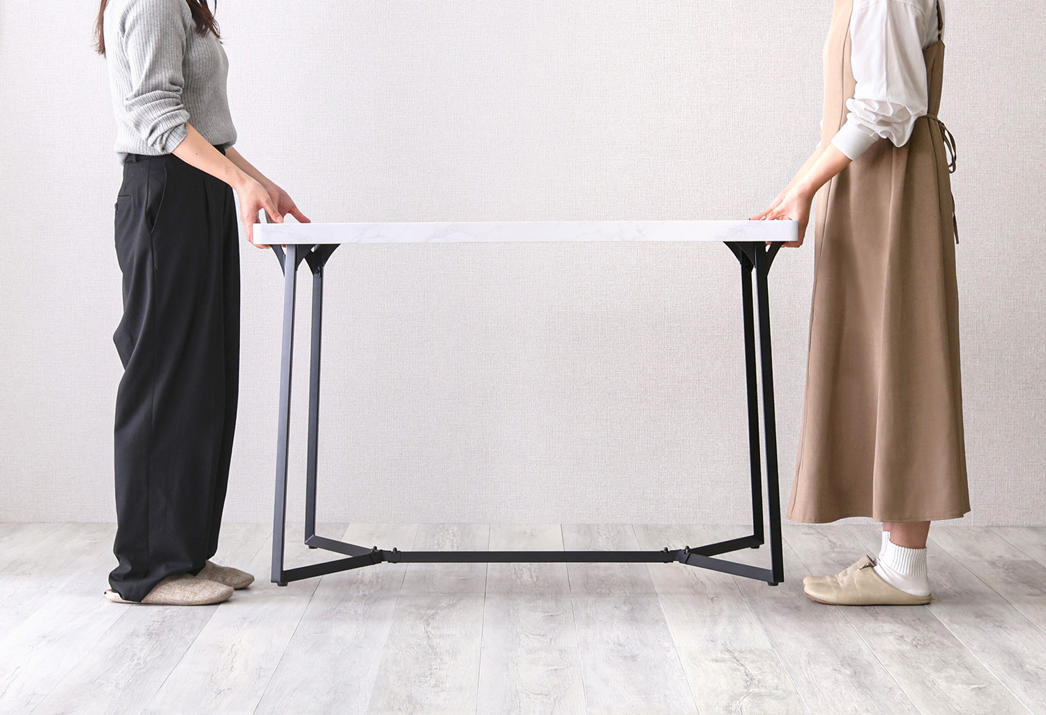 美しい大理石の模様を施したダイニングテーブルと、スツールタイプのチェア4脚の大理石調ダイニング5点セットです。直線的なデザイン、シャープなフォルムで洗練された印象のダイニング。リアルな大理石柄の天板のダイニングテーブルは、2人~4人で使うのに丁度良い、広すぎず、狭すぎない食事にぴったりのサイズ。チェアはスツールタイプを採用しており、前後左右から腰掛けやすく、軽量で出し入れもスムーズ。耐荷重約100kgで安定感があります。ホワイト、グレーの2色から選べます。