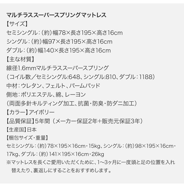 マルチラススーパースプリングマットレス付き / ダブル / ホワイト / アイボリー [No.100026534]