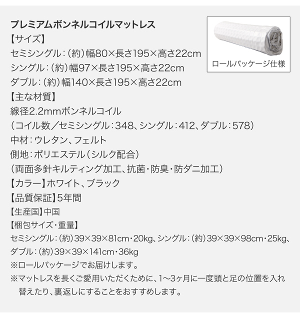 プレミアムボンネルコイルマットレス付き / ダブル / ブラック / ホワイト [No.100026787]